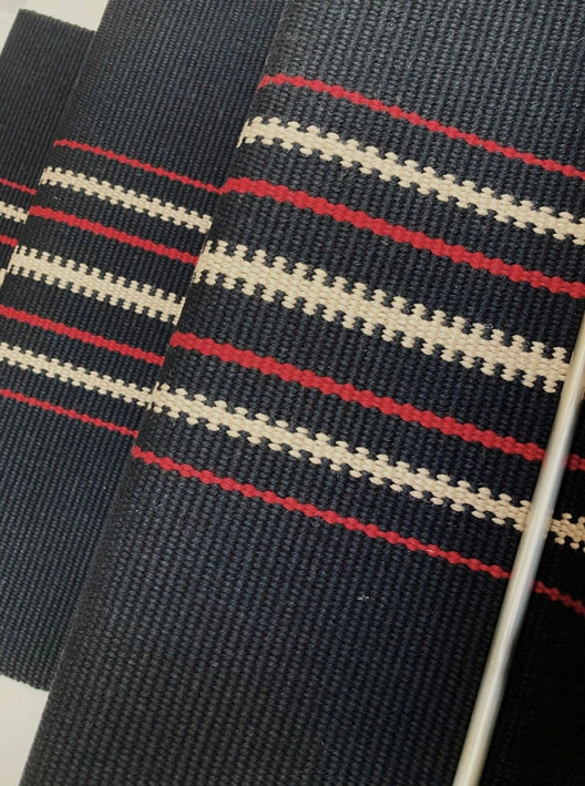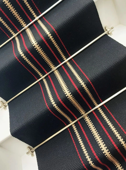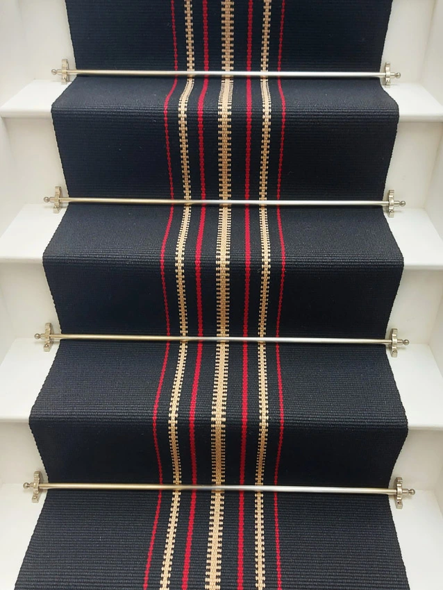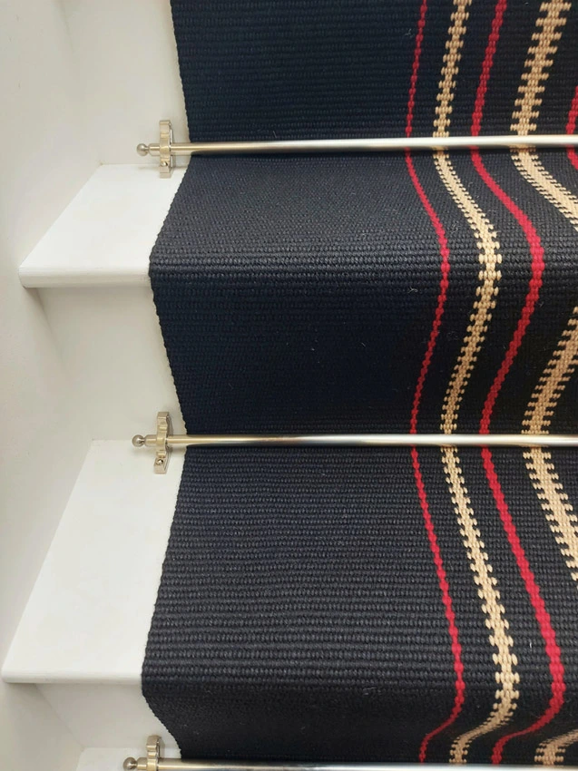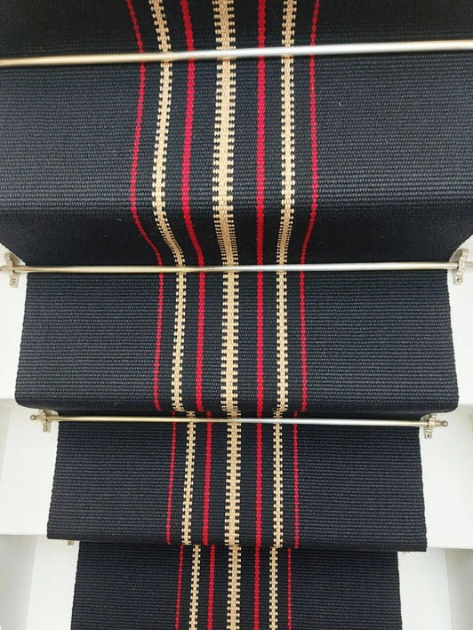 Tapis d’escalier tissé plat, 100% laine, Stripes Heritage Black HER01