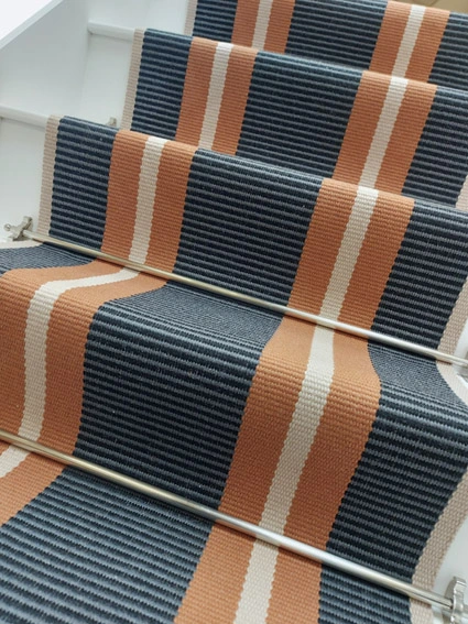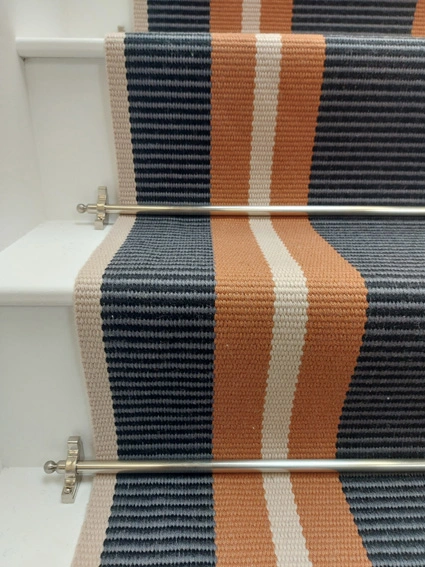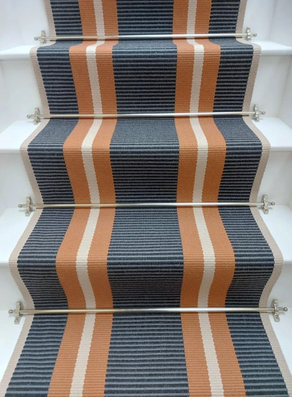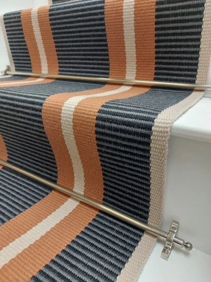 Tapis d’escalier tissé plat, 100% laine, Stripes Transat Cinnamon PNT32